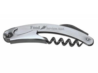 Incorporate branded engraved stainless corkscrew bottle openers in your next promotional campaign