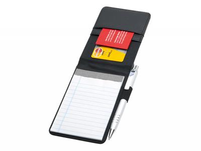 Boss Notepad Memo Jotters are a soft grain finish jotter to create the ideal promotional product. Features include large print area, card pockets, pen loop and 2 writing pads. Product size is 130mm x 90mm wide with 60 pages per pad (2 pads supplied). Pen not included.