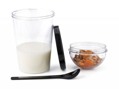 Incorporate branded breakfast containers with spoons (450ml + 150ml) in your next promotional campaign