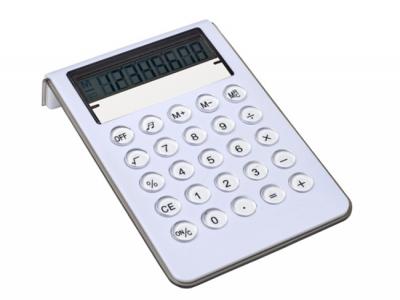 Incorporate branded white desk calculators in your next promotional campaign