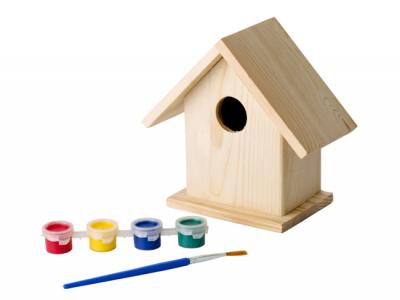 Creative Birdhouse With Paints is a wooden birdhouse that includes paints to create your own unique design. This is a very creative paint set that comes with a useful birdhouse. These Birdhouses feature a painting set, including four colours and a brush. These are a great kids giveaway item or for bird lovers.