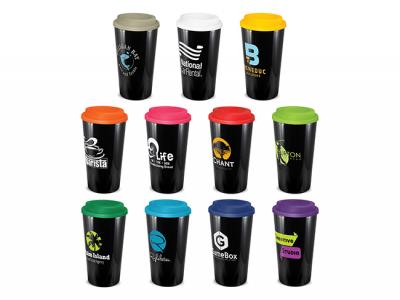 Personalise your cafe grande double wall cups (480ml) or custom design bpa free plastic mugs for your marketing campaign.