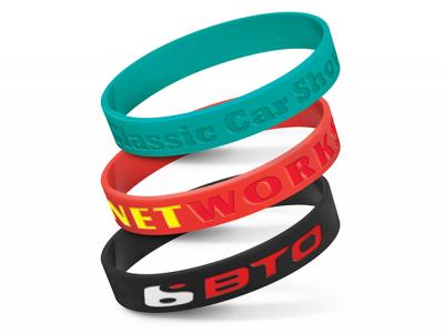 Personalise your debossed silicon event wrist bands or custom design event wristbands for your marketing campaign.