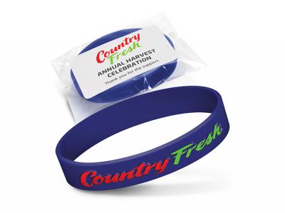Silkscreen Printing your promotional embossed silicon event wrist bands:Your promotional embossed silicon event wrist bands can be silk screen printed in 1 or more colours. Costs shown include a 1 colour logo print on your custom branded embossed silicon event wrist bands. We can print more than 1 colour, however it incurs extra costs. We can achieve a perfect PMS colour match for the print.
