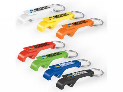 Ricco Plastic Bottle Opener Keyrings are a plastic bottle opener key tag that opens crown seal tops and ring pull can tops. Ricco has a split ring that is 25mm in diameter, perfect to add to any set of keys.
