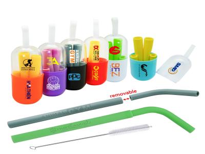 Incorporate branded 2 part reusable silicon straws in your next promotional campaign