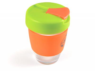 Personalise your glass coffee cups (320ml) or custom design glass reusable coffee cups for your marketing campaign.