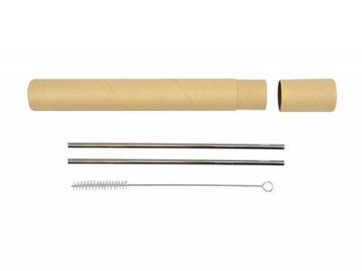 Eco Stainless Steel Straw Sets are a set of 2 straws with cleaning brush in a cardboard biodegradable tube. The straws are made from stainless steel and can be used for hot or cold drinks and are dishwasher safe. Recommended cleaning method is to use brush provided. Provides an alternative to plastic straws and reducing plastic waste: Australians use around 10 million straws everyday or 3.5 billion a year that won't decompose in our lifetime. Make your brand stand out with an eco straw set.