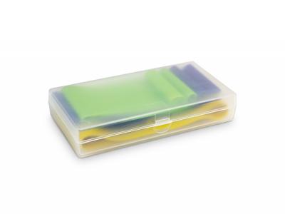 Stretch Resistance Exercise Bands are a set of three silicone exercise bands presented in their own carry case. Each band has a different resistance level to produce a range of workout intensities.