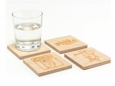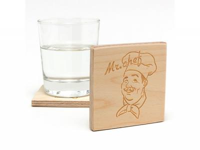 Personalise your engraved chunky plywood coasters - square (9mm) or custom design bbq grilling accessories for your marketing campaign.
