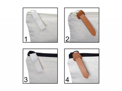 - (2) natural cotton zip puller or leatherette zip puller an extra $0.25c each.