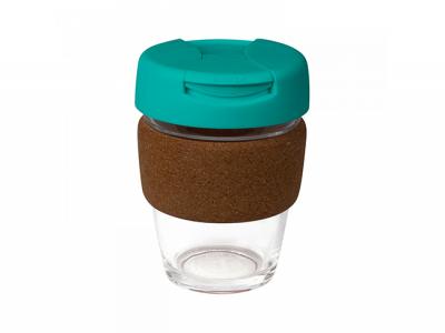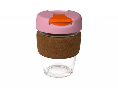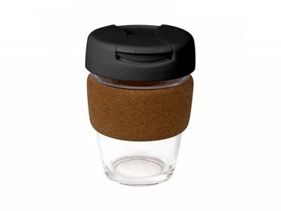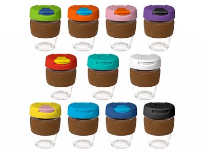 Personalise your india glass cups with flip lid & cork band (340ml) or custom design glass travel cups for your marketing campaign.