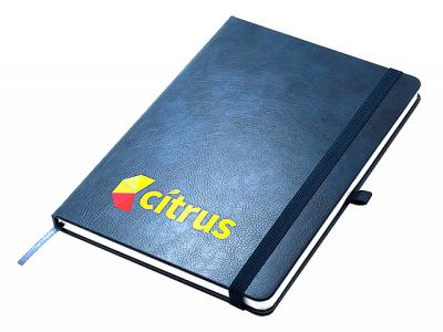 Hard Grained Leather Pu Cover Notebooks are designed with a premium Grain Leather feel hard cover and featuring a 9mm wide elastic closure, pen loop and a matching marker ribbon. These notebooks are available in black, navy or grey and Notebook Gift Box is optional extra.