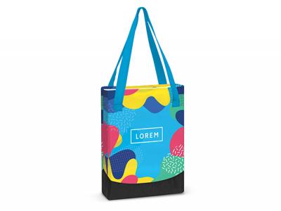 Domino Full Colour Tote Bags are a small tote bag which is manufactured from tough 600D polyester. It can be branded on both sides with stunning edge to edge full colour print. Domino has a base gusset for added carrying capacity and long woven handles so it can be carried on the shoulder. The base gusset and carry handles are available in the choice of 10 standard colours and can be mixed and matched.