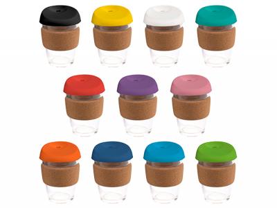 Features: 11 vibrant coloured silicon lids and cork band locally stocked with a High quality glass 12oz/340ml cup.