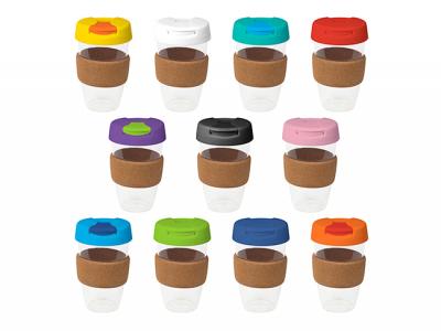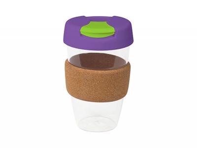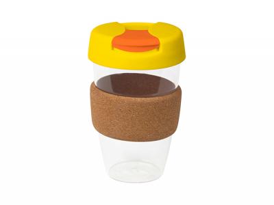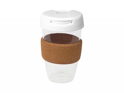 Personalise your flip lid plastic reusable cups with cork band (535ml) or custom design bpa free plastic mugs for your marketing campaign.