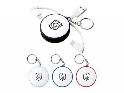 Incorporate branded round 3 in 1 charging cable keyrings in your next promotional campaign