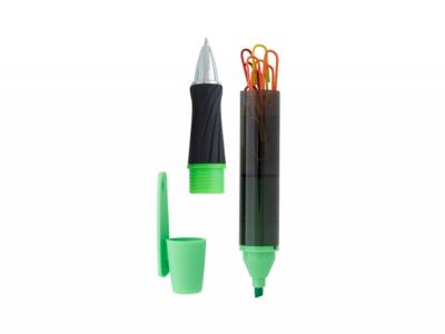 Office Mate Multi Pens are a highlighter pen, ballpoint black pen and paper clip holder all in one! They also feature a rubber grip for writing comfort and control. These are the perfect all in one pen!