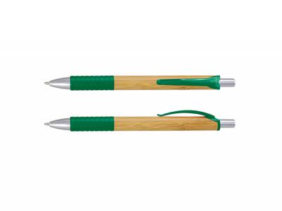 Custom Bamboo Pens are a retractable ball pen with a natural bamboo barrel, a soft touch grip and shiny chrome accents. These Custom Eco Pens have a blue refill with 1000 metres of German manufactured Dokumental ink and a tungsten carbide ball for improved writing quality. Bamboo is a natural material which produces unavoidable variances in the grain pattern, colour and branding. These custom bamboo pens laser engraves to a natural etch. These branded eco friendly pens are the way forward, be future ready.