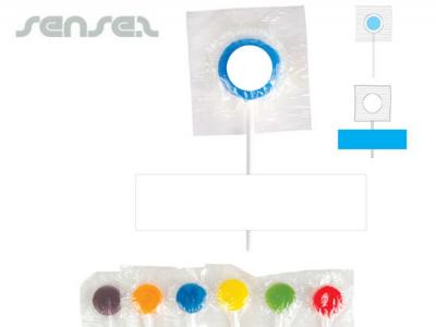 We can brand them with either a round full colour printed sticker on lolly wrapper or a flag sticker in full colour on the stem of the lollipop.