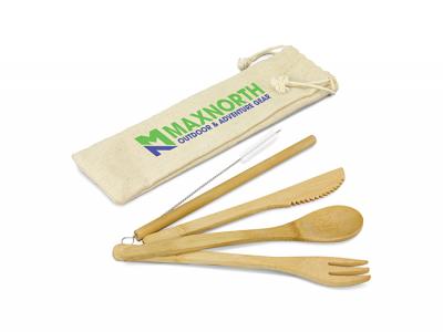 Personalise your eco bamboo cutlery sets with straw or custom design cutlery sets for your marketing campaign.