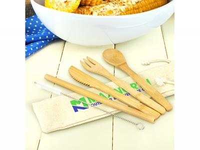 Custom brand these eco bamboo cutlery sets with straw or one of our best-selling promotional picnic gifts»cutlery sets with your company logo!