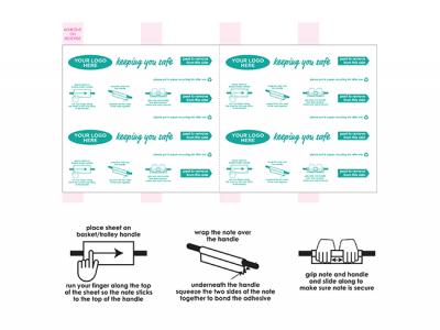 Personalise your removable barrier notes for shopping trolleys and baskets or custom design hand sanitiser for your marketing campaign.