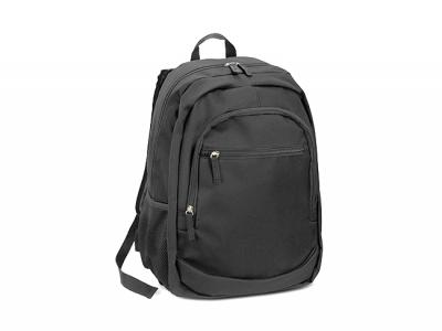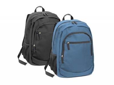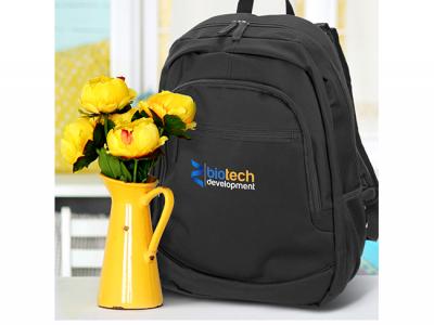 These robust custom backpacks are manufactured from 600D polyester and come with a main zippered compartment with an internal laptop sleeve and two zippered external pockets on the front. Other features include a padded back, adjustable woven shoulder straps, a woven carry handle, two mesh side pockets and woven zipper pulls.