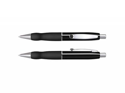 These promotional pens come with a lacquered barrel and a soft rubber grip. They have shiny chrome accents and a distinctive coloured insert in the clip. Their black large volume refill of German manufactured Dokumental ink lasts 1800 metres while the tungsten carbide ball will ensure improved writing quality. The laser engraves to a brass colour finish here and the pens can be nicely presented in an optional velvet sleeve or a gift box.