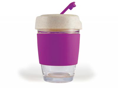 Incorporate branded eco flip lid glass coffee cups with silicone bands (320ml) in your next promotional campaign
