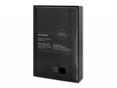 The Classic Leather Notebook is designed to capture precious handwritten notes in premium Italian leather. This luxury notebook contains 88 leaves (176 pages) of 100g/m² lined Moleskine ivory-coloured paper. Other features include a customisable ’In case of loss’ notice printed on the first page, a matching bookmark ribbon, and an elastic closure for privacy. The Moleskine logo is subtly debossed on the back cover and printed on the inside front cover. The Classic Leather Notebook is presented in a neat box with a cut-out lid that allows you to experience the tactile, pebbled leather cover.
