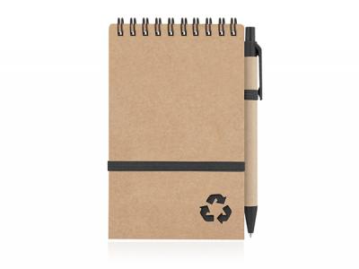 Incorporate branded recycled paper spiral bound notepads with elastic and pen (small) in your next promotional campaign