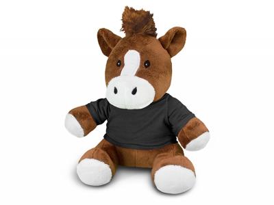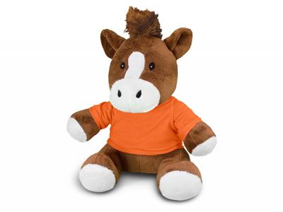 Get your artwork printed onto the t-shirts of these soft promotional horse plush toys. Out of 11 different shirt colours, you can choose the one which matches your corporate colours the best. Plush animals provide a cute and cuddly branding option and are great for brand recognition and spreading goodwill.
