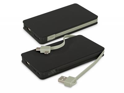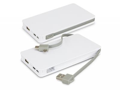 Custom Power Banks with 5W Wireless Charging Power. These Promotional Power Banks are a new wave wireless charging power that can charge two devices at once. It will charge devices that are enabled for wireless charging simply by placing them on top of the power bank. It also offers conventional charging for almost any phone with a wraparound cable that fits neatly into the housing. It has a Type-C connector and a unique double-sided connector with Lightning on one side and Micro-B USB on the other. The cable is also used for recharging the power bank from a USB port or a mains adaptor. These promotional power banks have 10,000mAh of power storage, an input power of 5V/2A and an output power of 5V/2.4A.