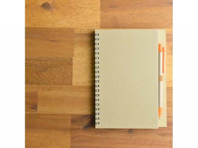Personalise your unbleached eco spiral cardboard notebooks with pens or custom design notepads with pen for your marketing campaign.
