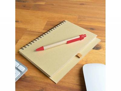 Incorporate branded unbleached eco spiral cardboard notebooks with pens in your next promotional campaign