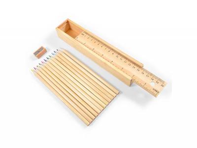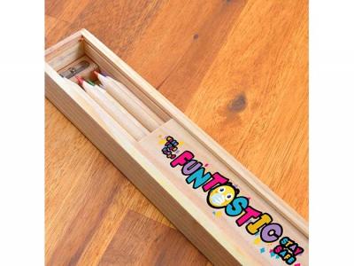These creative eco wooden sets come with 12 full sized sharpened natural colouring pencils which will be supplied in a timber case with a sliding lid. The lid also features 20cm metric/8" imperial ruler markings on 1 side - The other side is blank for logo decoration. A wooden pencil sharpener is also included in the box.