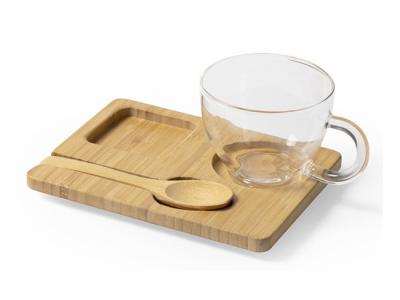 Our custom made Bamboo Serving Board And Glass Mug Sets (180ml) can be produced from a minimum quantity of 100 pieces.