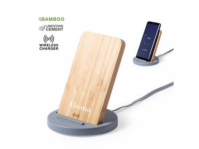 Get your logo engraved or printed onto these promotional wireless chargers which also function as a smartphone holder at the same time. Manufactured from a combination of natural cut bamboo pieces and limestone cement - a conglomerate formed by the mixture of natural materials (mainly ground limestone and water) obtaining a material of great consistency and durability. An USB cable in matching color is included in delivery and these custom wireless chargers are compatible with devices equipped with wireless charging technology. These custom wireless chargers also come with a safety protection to avoid overheating, overcharging and short-circuiting and will be presented in an attractive designed box.