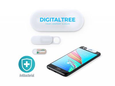 These custom branded antibacterial treated covers are designed to protect your privacy and to avoid that third parties have access to your mobile device or laptop camera. They come with a reusable 3M adhesive side and will be presented in an individual bag.