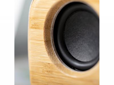 Get your logo engraved or printed onto these promotional eco Bluetooth speakers which are made from a combination of nature-cut bamboo pieces and wheat straw housing in order to encourage the use of natural raw materials and to reduce pollutant emissions. Compact in size and with a practical carrying handle made of soft silicone, these custom branded speakers become the perfect complement to the smartphone.