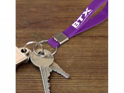 These unique key rings feature a 12mm wide custom printed silicone loop and can also be attached to items as a handy carry strap.