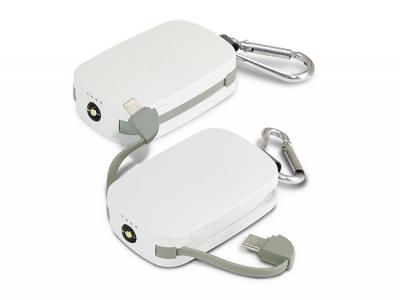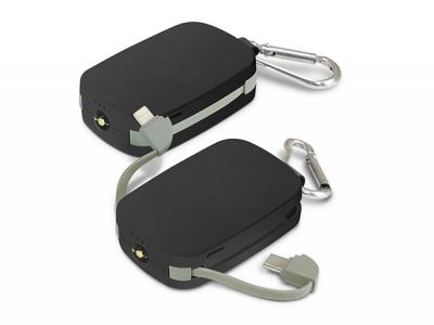 These custom printed 1200mAh emergency power banks come with a handy carabiner and a three function LED light. They will charge almost any smartphone and has built-in cables with a Type-C connector and a unique double-sided connector with Lightning on one side and Micro-B USB on the other. Furthermore, they have an input power of 5V/1A, an output power of 5V/1A and a handy LED power gauge and can be recharged from a USB port or a mains adaptor.