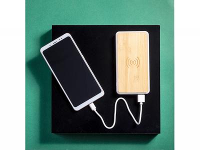 Incorporate branded bamboo power banks with integrated wireless charger (8000mah) in your next promotional campaign