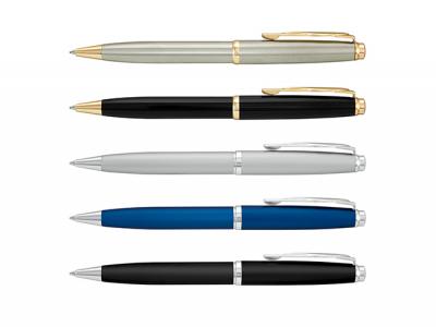 These classic twist action Momento Pens have a metal barrel and a timeless European design which is one of the hallmarks of Pierre Cardin! They are available in black and shiny chrome with gold accents or matt finish silver, blue and black with shiny chrome accents. These custom branded Momento pens come with a black large volume refill with 4500 metres of German manufactured Dokumental ink and a tungsten carbide ball for improved writing quality.