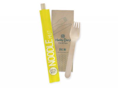 Personalise your sustainable disposable packaging & cutlery or custom design cutlery sets for your marketing campaign.