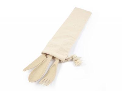 Promotional Eco Wheat Fibre Cutlery Sets In Calico Pouch