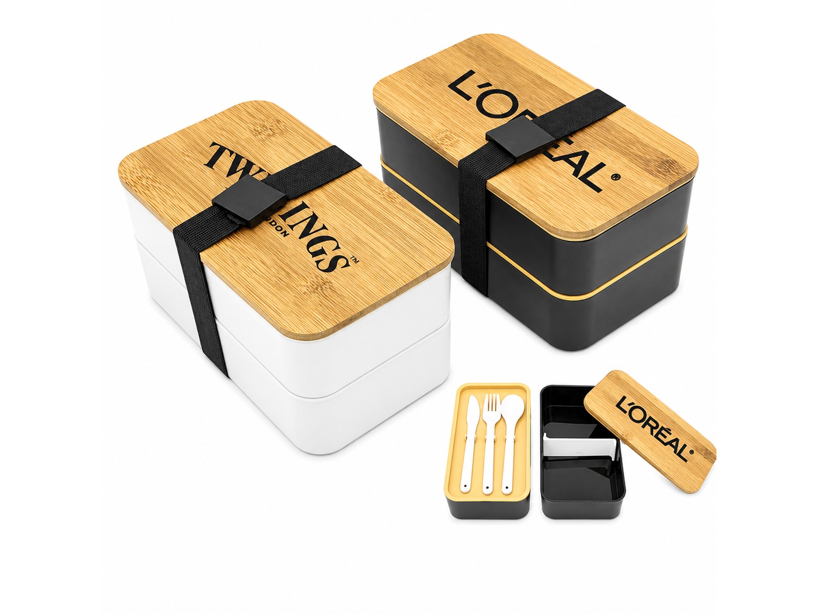 These handy personalised lunch boxes feature not only 2 compartments, but also come with a cutlery set and your company's logo printed or engraved onto the lids: The first layer features a divider to keep food separate, with a larger compartment in the second layer. Your client will love the every day use of these functional personalised lunch boxes!