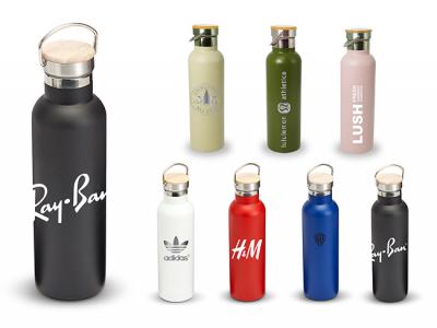 Personalise your metal bottles with wooden cap (750ml) or custom design insulated water bottles for your marketing campaign.