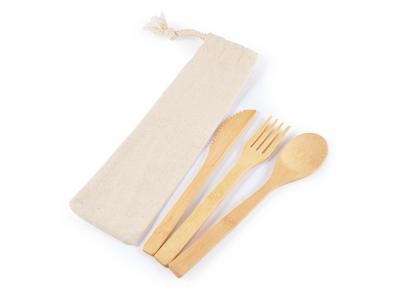 Incorporate branded bamboo cutlery sets in calico pouch in your next promotional campaign